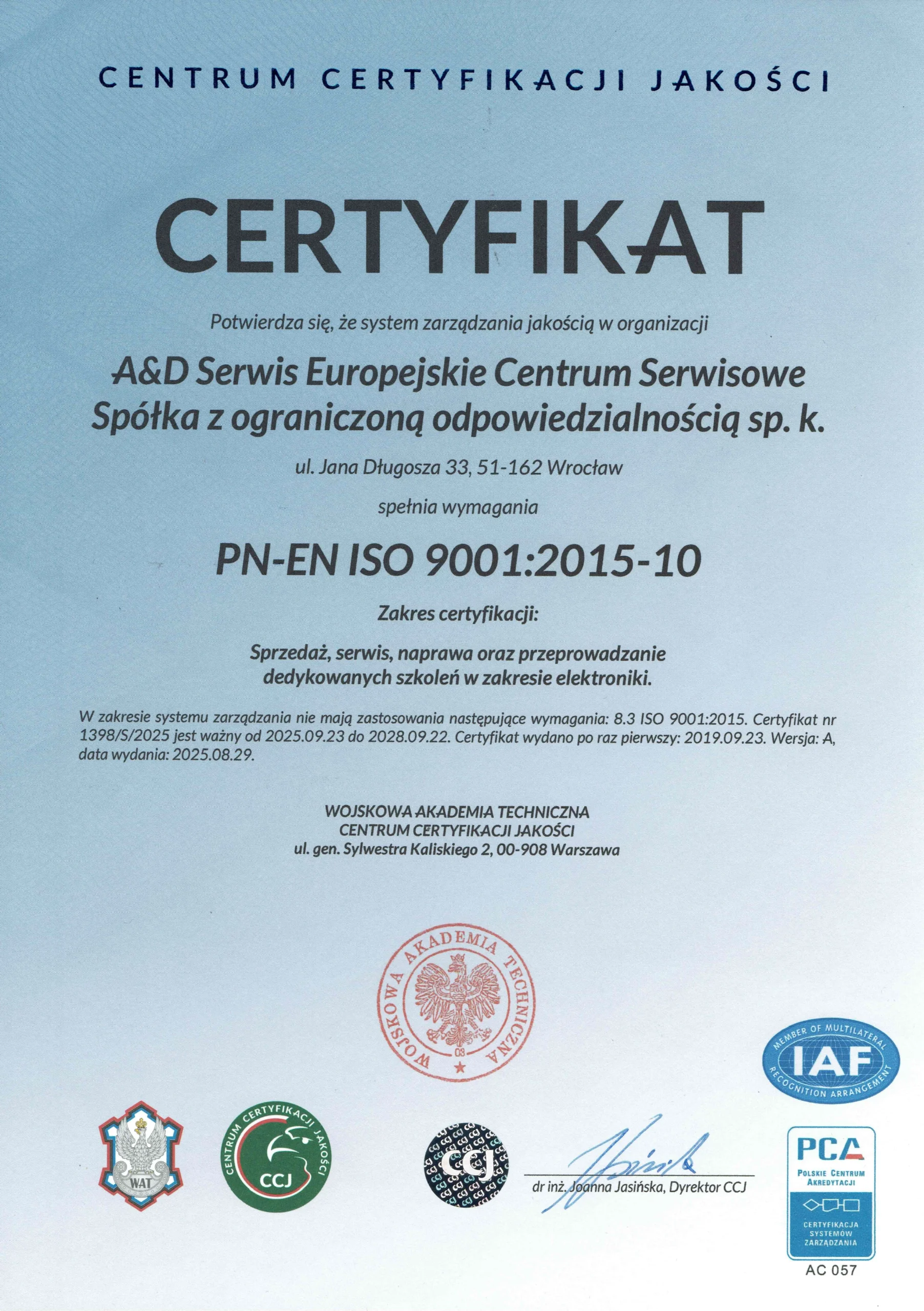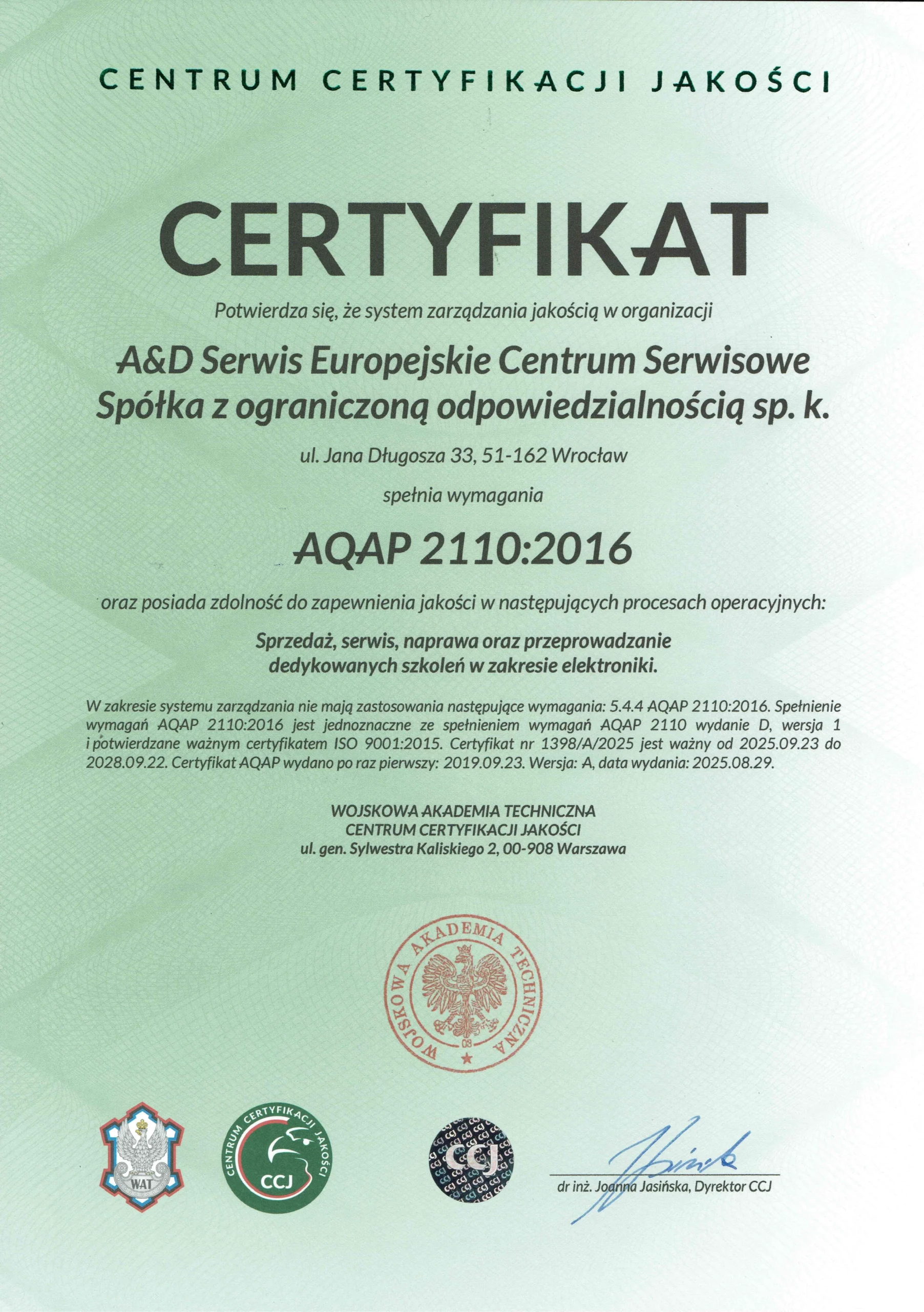 repair of PCBs, computers, and electronic circuits in military equipment; obtaining the MSWiA B-049/2019 license and NCAGE 9AJDH, AQAP 2110:2016, and ISO 9001:2015 certificates